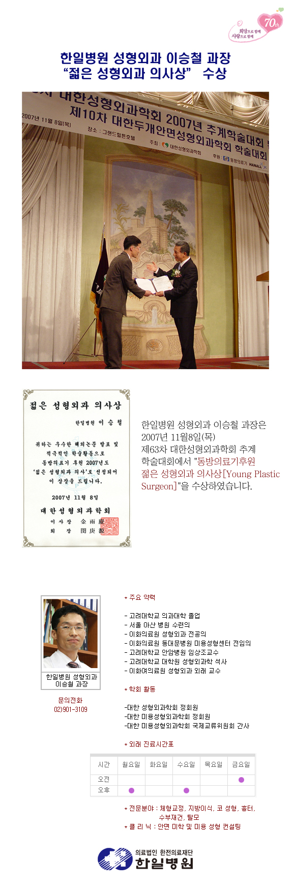 [성형외과] 이승철 과장 "젊은 성형외과 의사상 수상자료"