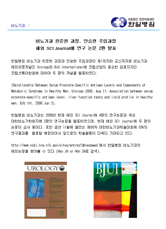 [비뇨기과] 해외 SCI Journal 연구논문 발표
