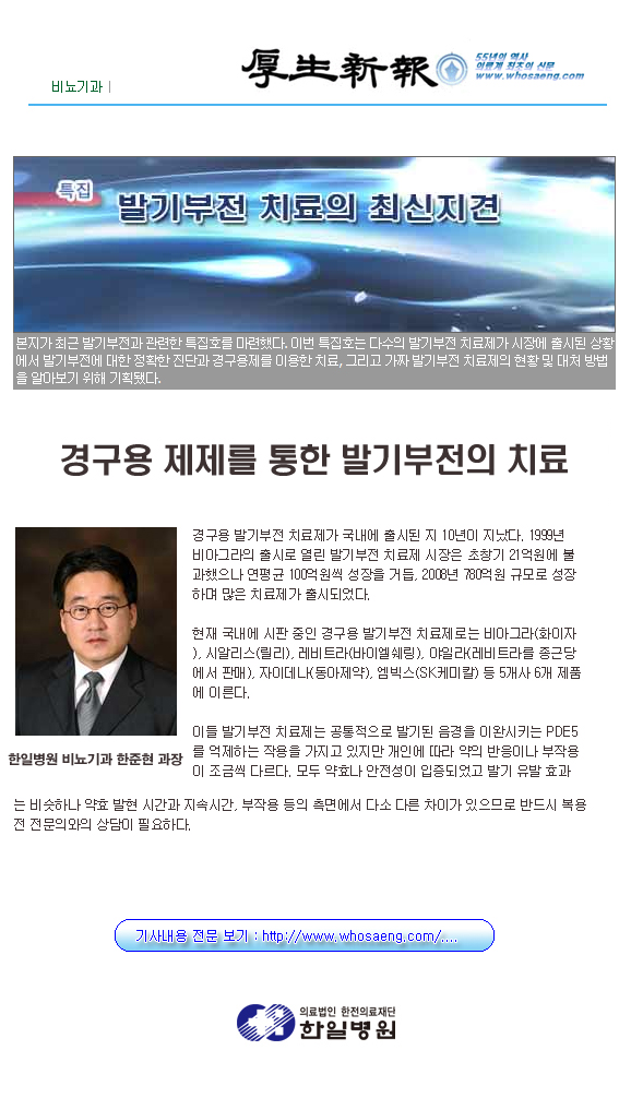 [후생신보]비뇨기과 한준현 과장 - 경구용 제제를 통한 발기부전의 치료