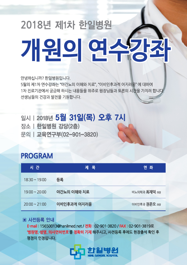 문의 : 02-901-3820 (한일병원 교육연구부)